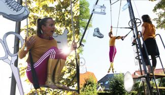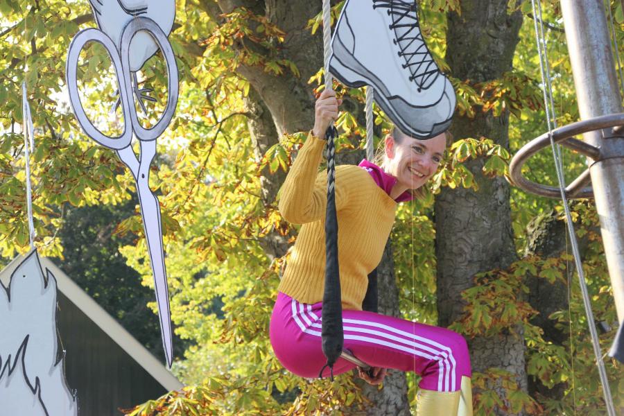 Die Trapezkünstlerin ist somit Expertin für Leben im begrenzten Raum. 2020 war ein erster Einblick in eine post-apokalyptische Welt mit beträchtlichen Begrenzungen des gewohnten Raumes. Die Trapezkünstlerin kann Rat geben, Mut machen und Ideen anstoßen, um aus der Begrenzung des Alltags das Beste zu machen. In „HochZuhaus“ führt Jana Korb artistische Gespräche mit jeweils zwei Personen, die zu ihr auf das Gerüst kommen.